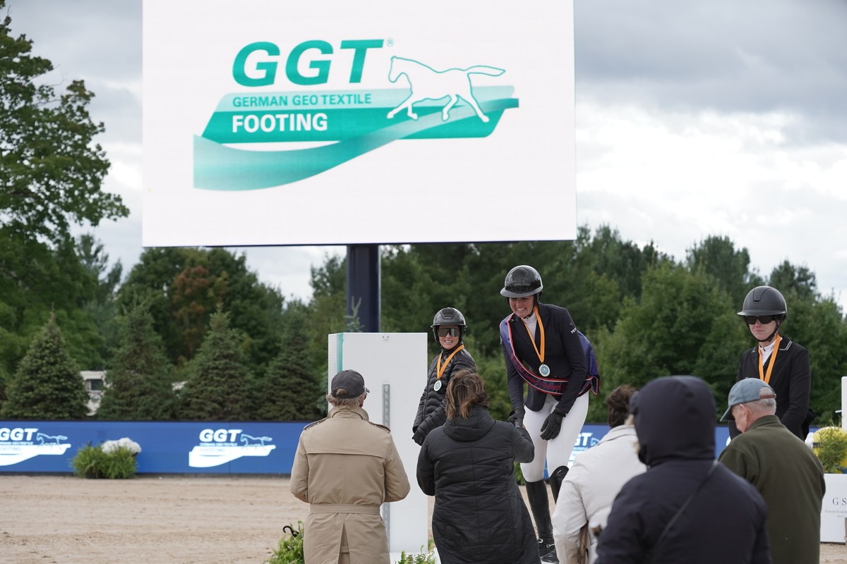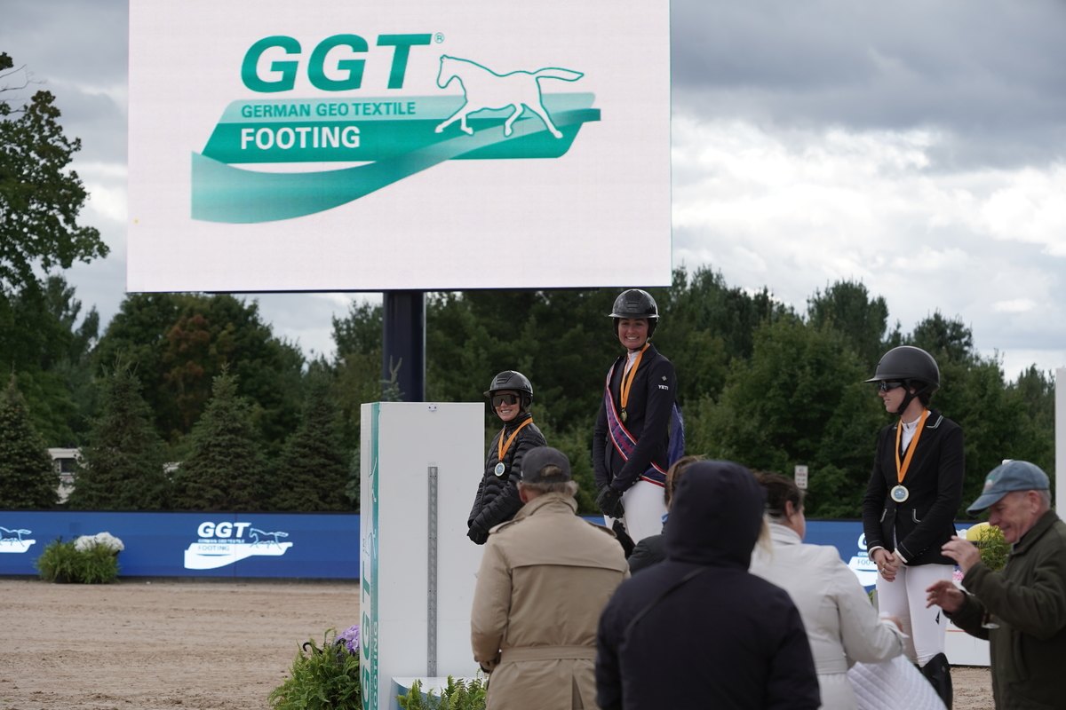 Ever since people started using riding arenas when working with their horses they were experimenting with the large variety of materials for the use as footing. In former times pure grass riding places were created, but soon one noticed that by constant riding on the hoof track the soil consolidated and with rainfalls it turned to a mud bath. People went searching for alternatives for grass footing and discovered the sand. Over years sand and arenas with sand – wood mixture were the standard. Some arena builders wanted to build something better and searched for new materials, which they found in plastic chaff. Since beginning of the 90’s the first, new arena footings were created with geo textile or felt chaffs in Germany. This new footing which was regarded very critically at first by equestrians, owners of stable and arenas, turned out to be the optimal footing for dressage and jumping in the last 10 years. Footing with felt and fibers proofed to be the most successful solution in Germany and internationally.